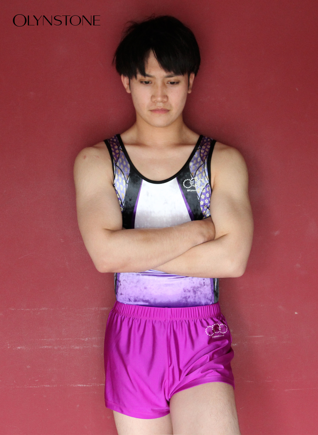華やかなカラーリングに色鮮やかなクリスタルの輝きが美しい体操競技レオタードです。